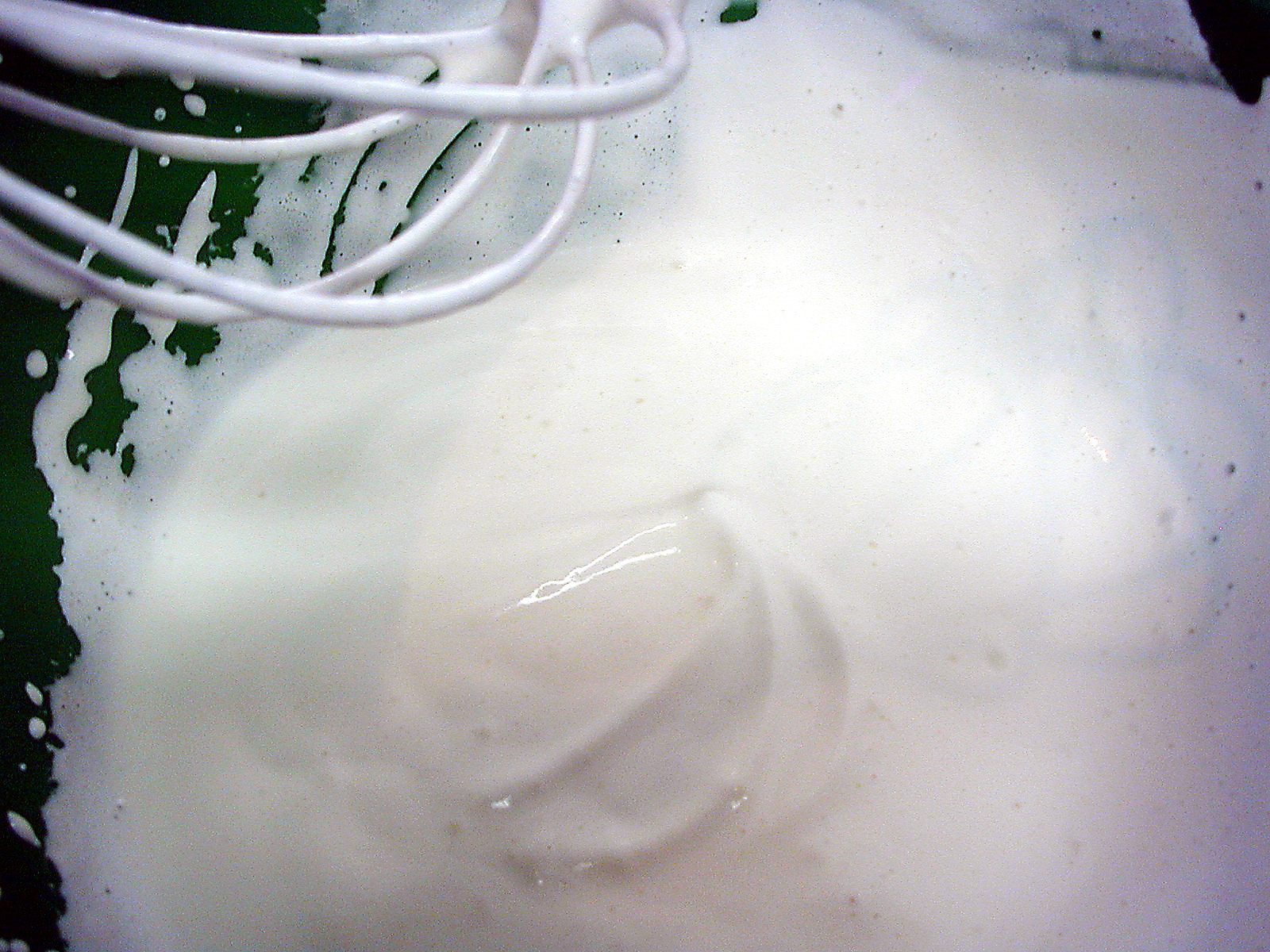 8、違うボールに生クリームを入れ、6〜7分立てにする。