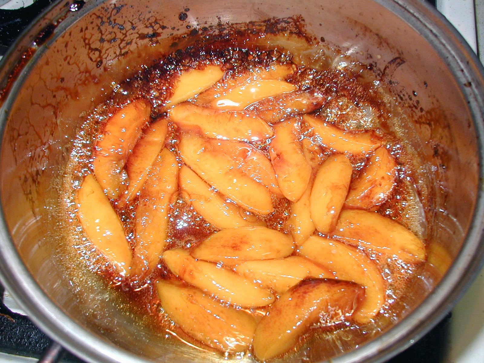 6、5を鍋に2〜3cm残し、ボールに移す。鍋に切った黄桃を並べ、